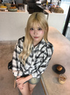 起毛感のあるシックなチェック柄を使用したショート丈トップス。フロントのドロストリボンがポイントで、きゅっと絞ればガーリーなルックスに。