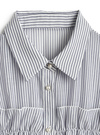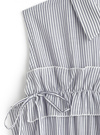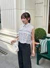 ほんのり透け感のあるストライプ生地で、抜け感と清涼感を演出。フリルと両サイドのリボンが、フェミニンなエッセンスを添える。
