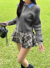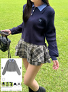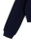 細かいケーブル編みがクラシカルな印象のニットプルオーバー。配色のダブルカラーが今っぽさ漂うデザイン。