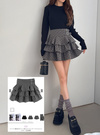 インパン裏地付きドット柄ベルトティアードフリルミニスカート[on382]
