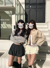 ショート丈がウエストラインを高く見せ、スタイルアップ効果◎。