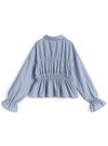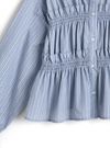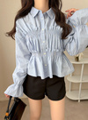 ストライプ柄シャーリングフリルブラウスの商品詳細情報のページです。