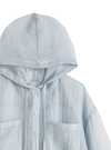 シワ感のあるシアー生地で仕立てた、軽やかな着心地のシャツ。パーカー風のフード付きデザインがスポーティーな雰囲気をプラス。