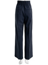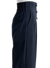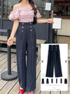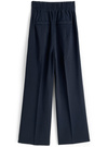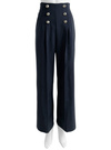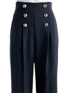 ウエストに並んだゴールドのボタンが爽やかなマリンパンツ。ストンとしたストレートシルエットにセンタープレスをつけて、縦のラインをいっそう強調。