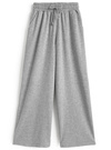 ストレートパンツはウエストゴム仕様で、窮屈感なく快適に過ごせる。