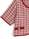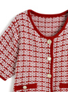 凹凸感のあるツイード編みニットで仕立てたクラシカルなカーディガン。フロントとポケットに施されたゴールドボタンが華やかなアクセントに。