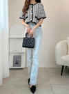 ベーシックなデニムやスカートを合わせるだけで、高見えコーデに仕上がる一着。