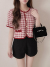 ゴールドボタンツイードニットカーディガンの商品詳細情報のページです。