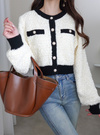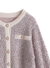 立体的で凹凸感のある糸で編まれたこだわりのニットカーディガン。配色リブでメリハリ効かせたエレガントなデザイン。