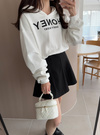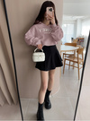 フロントの英文字刺繍が目を引くカジュアルなトップス。裾はゴム仕様でキュッとタイトに引き締めたデザイン。