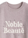 胸元の配色になったジャガードロゴが印象的なニットプルオーバー。パールやラインストーンを散りばめることで、華やかでスウィートな印象に。