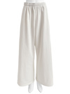ソフトな風合いのスウェット素材で、肌あたりも心地よいワイドパンツ。締め付け感のないウエストゴム仕様で、ストレスフリーな穿き心地を実現。