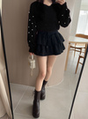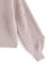 今季トレンドのシャギーニットがワンランク上の装いを叶えるトップス。スリーブに艷やかなパールを添えることで、自然と上品な雰囲気に。