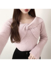 ひねりが効いたツイストデザインで媚びない女っぽさを表現。柔らかなニット素材にラメを織り込み、表情豊かな華やぎを演出。