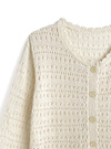 緩めの透かし編みが施された、軽やかなニットカーディガン。ネックラインや裾などにあしらったスカラップデザインがアクセントに。