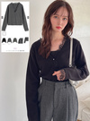 小ぶりなパールボタンも女性らしさを引き立てる。