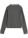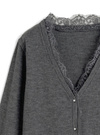 ウールタッチの風合いが温もりを感じるニットカーディガン。フロントや袖口に繊細なレースをあしらった大人フェミニンなデザイン。