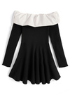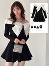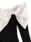 大きなリボンが視線を惹きつける、甘さたっぷりなガーリーワンピース。オフショルダーのデザインでデコルテをきれいに見せ、女性らしさをグッと引き立てる。