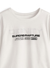 ベーシックなTシャツに存在感のあるロゴデザインをあしらったトップス。立体的なスタッズやかすれたプリントが、カジュアルな雰囲気を演出。