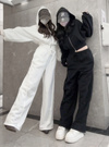 ダブルジップパーカー×ワイドパンツスウェットセットアップ[pm752]