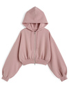 パーカーはやや短めの丈感にダブルジップ仕様で、おなかをチラ見せした今っぽい着方ができる。