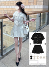 ノーカラーフリンジジャケット×フレアミニスカートツイードセットアップの商品詳細情報のページです。