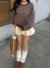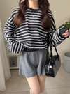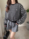 カジュアルながらこなれ感漂う、マルチボーダー柄のトップスが登場。ネックや袖、裾はリブ編みにすることでメリハリのある印象をプラス。