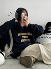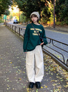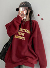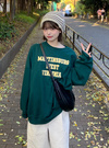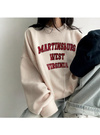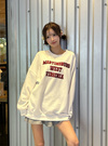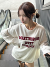 フロントのカレッジ風ロゴがポイントになったスウェットトップス。裾にかけて丸みのあるフォルムが、女性らしさを引き立てるポイント。