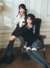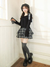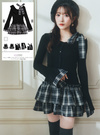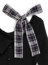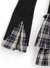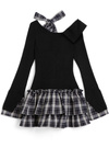 伸縮性のあるニットにチェック生地をドッキングしたミニワンピース。