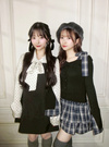 チェック柄ドッキングワンショルダーリボンフリルニットワンピースの商品詳細情報のページです。