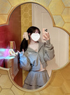 パーカーはラインストーンを散りばめた華やかなデザインで、胸元のロゴ刺繍もさり気ないポイント。