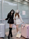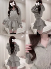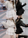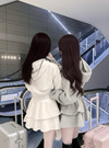 ラインストーンパーカー×ティアードフリルミニスカートスウェットセットアップ[pm804]