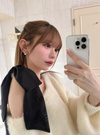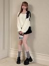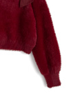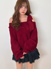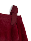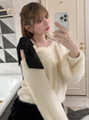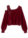 ふんわりとした滑らかな手触りのシャギー素材を使用したニットトップス。片側にシフォン素材のリボンをあしらった、女性らしさが引き立つワンショルデザイン。