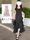 ドット柄アシンメトリーフリルキャミソールワンピースの商品詳細情報のページです。