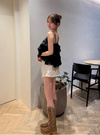 軽やかなシアー素材にシワ加工を施し、表情豊かに仕上げたキャミトップス。4段に重ねた揺れ感たっぷりのティアードフリルが上品な華やかさを演出。