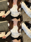 裾部分にもレース生地をドッキングし、甘さたっぷりに仕上げた。