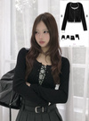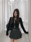 フロント部分のレースアップリボンが視線を集めるデザイントップス。