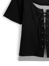 レイヤード風レースアップトップスの商品詳細情報のページです。