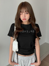 きらめくラインストーンロゴがアクセントになったガーリーテイストなTシャツ。さらっとした肌当たりの優しいカットソー生地で着心地◎。