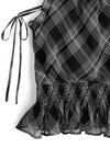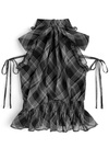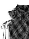 柔らかな風合いのチェック柄生地で仕立てた大人キュートなブラウス。肩をきれいに見せるアメリカンスリーブに華奢なリボンを添え、フェミニンさたっぷりに仕上げた。