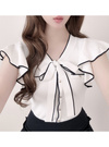 配色ボウタイフリルノースリーブニットトップス[pm910]
