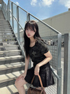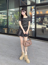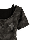 胸元にあしらったクロスモチーフのラインストーンロゴもアクセント。