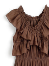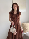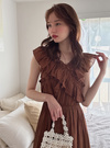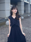 顔周りを華やかに彩るフリルデザインが魅力のフェミニンワンピース。