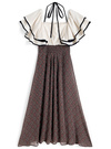 ホルターネックリボン配色フリルチェック柄ドッキングワンピースの商品詳細情報のページです。