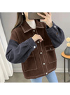 デニムドッキングト配色ステッチニットジャケット[pu68]