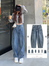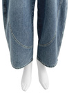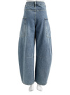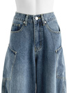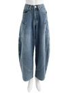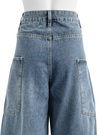 ダボっと感のあるカーブシルエットがこなれた印象を与えるワイドデニム。両サイドに施したビッグポケットがデザインポイント。