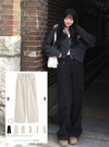 程よい厚みでハリのある生地で仕立てた、季節を問わず着回せるパンツ。ダボッとしたワイドシルエットなので、ゆったりとラフに着用できるのが魅力的。