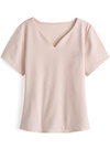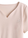 バックリボンやハートネックでTシャツをガーリーにアレンジ。コットンメインの伸縮性の良いカットソーを使用しているので、肌に優しく着心地も◎。
