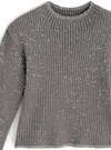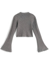 きらめきを放つラメがコーデを華やかにするニットトップス。フレアスリーブデザインが、上品な手元を演出するポイント。