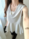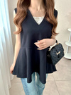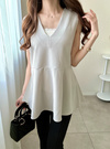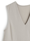 さらりとした生地感が心地よく、デイリーに重宝するノースリーブトップス。Vネックのラインが、顔まわりをスッキリと見せるポイント。